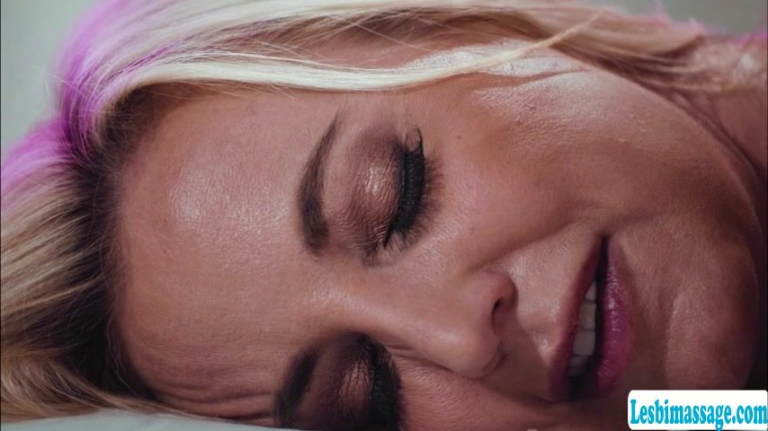 Brunette masseuse welcomes her milf client and she lets her get naked and start massaging her body passionately.After that,she gets horny and she then starts rubbing the pussy of her client and licks it after.
