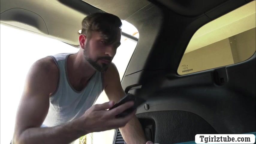 Horny skinny shemale gets her ass barebacked by pool cleaner Video