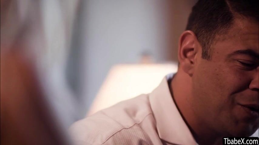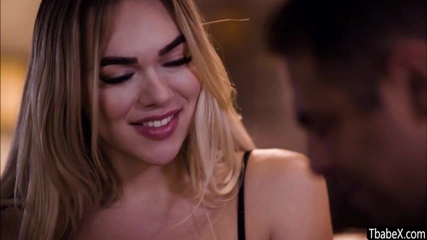 Pretty blonde trans woman Emma Rose noticed that her husband is not in the mood so she tries to eace him. With comforting caress then kisses until she bends down to suck his cock before she rides it in the couch.