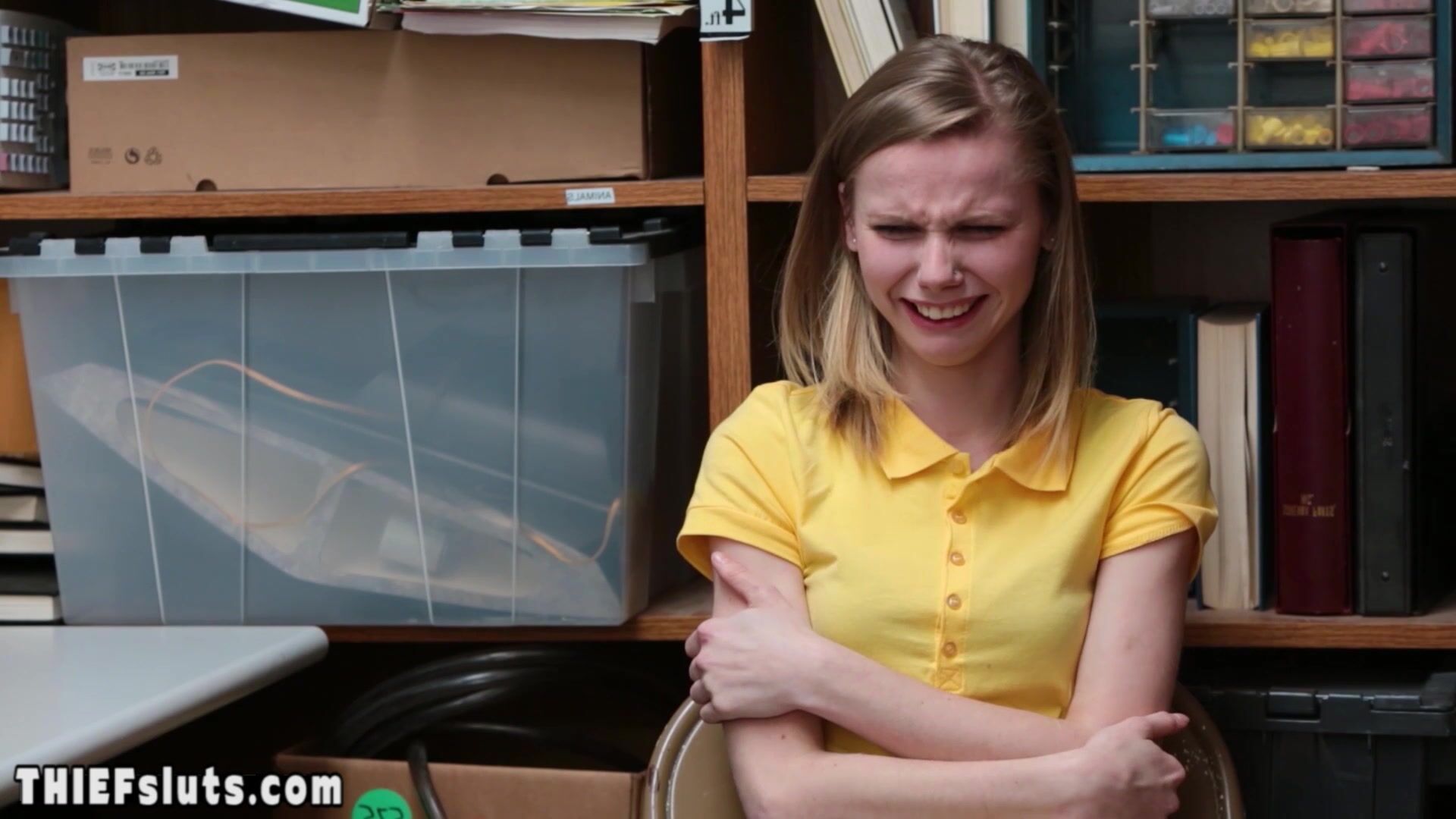 Dirty LP officer strip searching a skinny blonde russian teen shoplifter Catarina Petrov with small tits then he ordering the crying bitch to suck his big dick then he is fucking her pussy hard