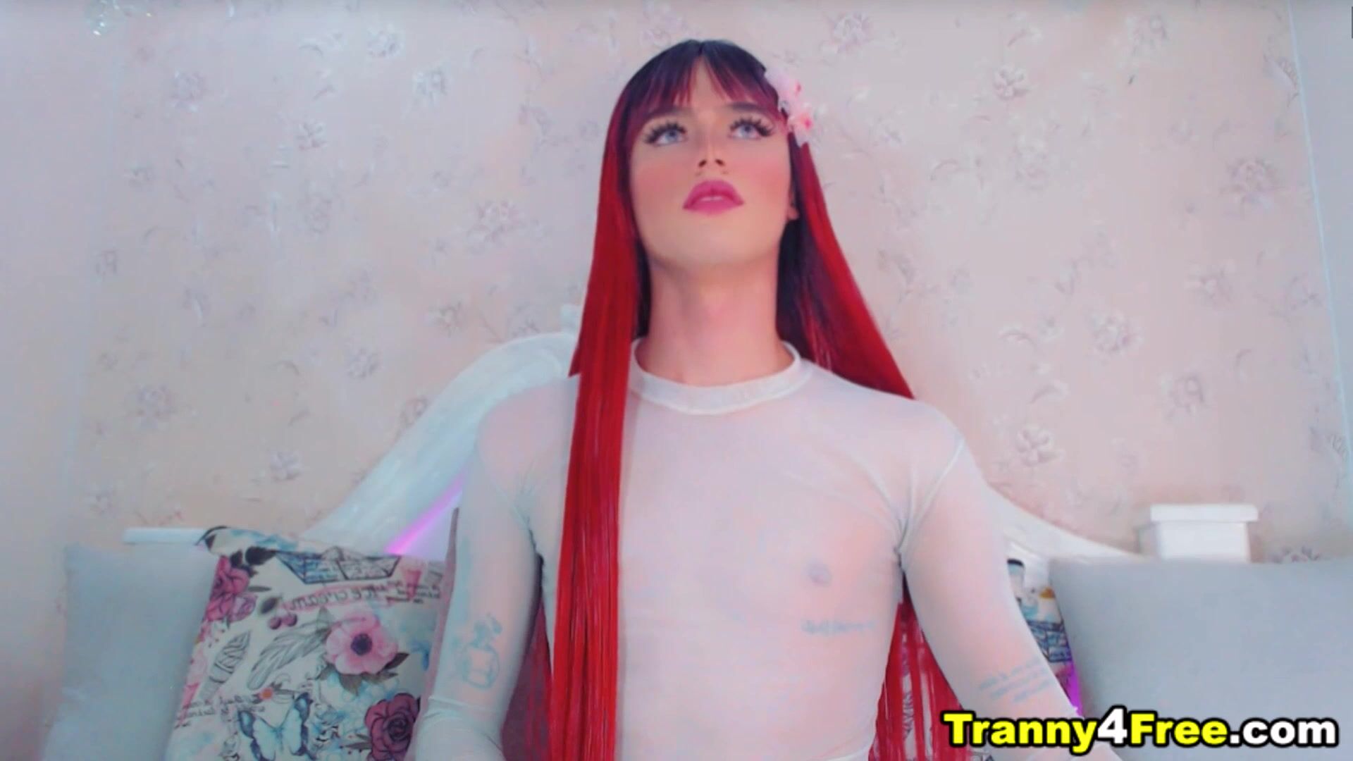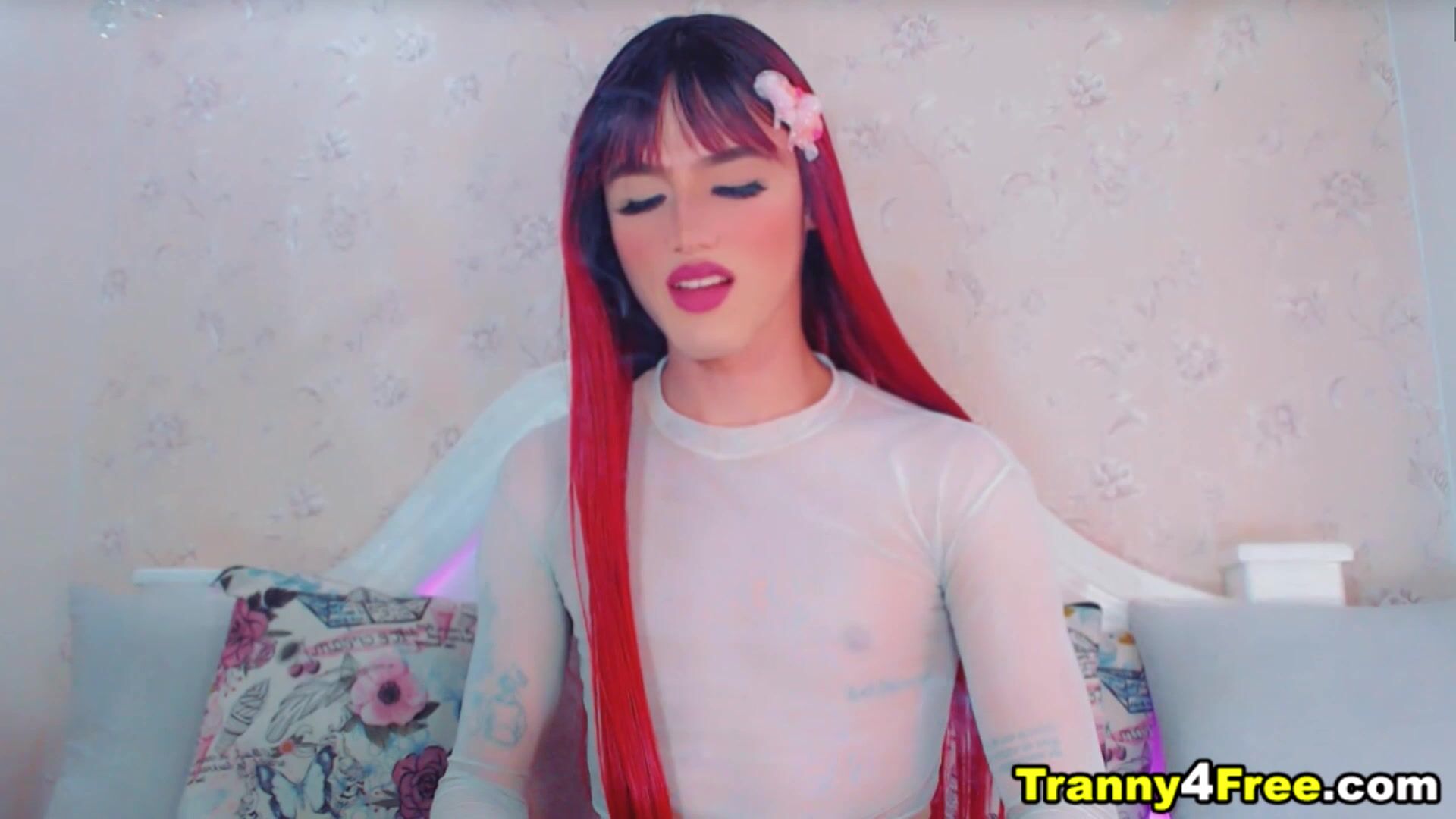 Red Hair Tgirl Gracefully Faps Her Dick Video