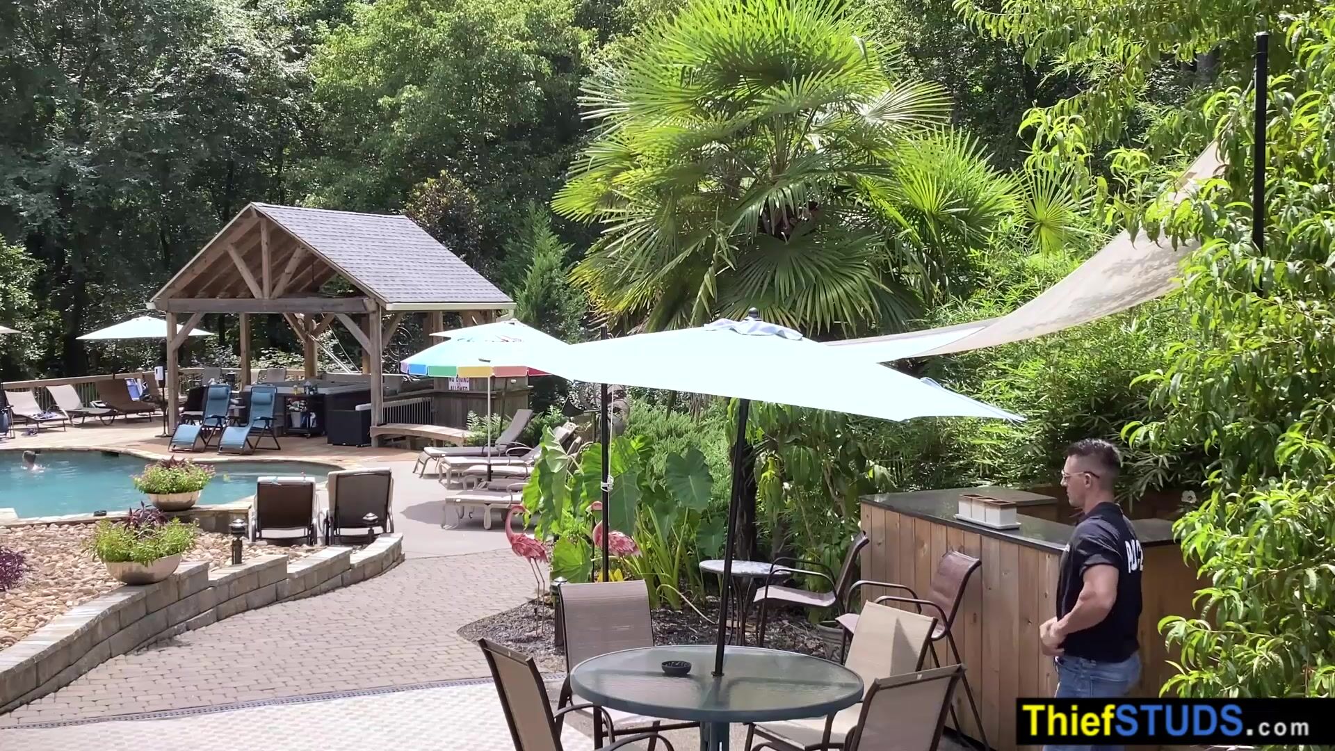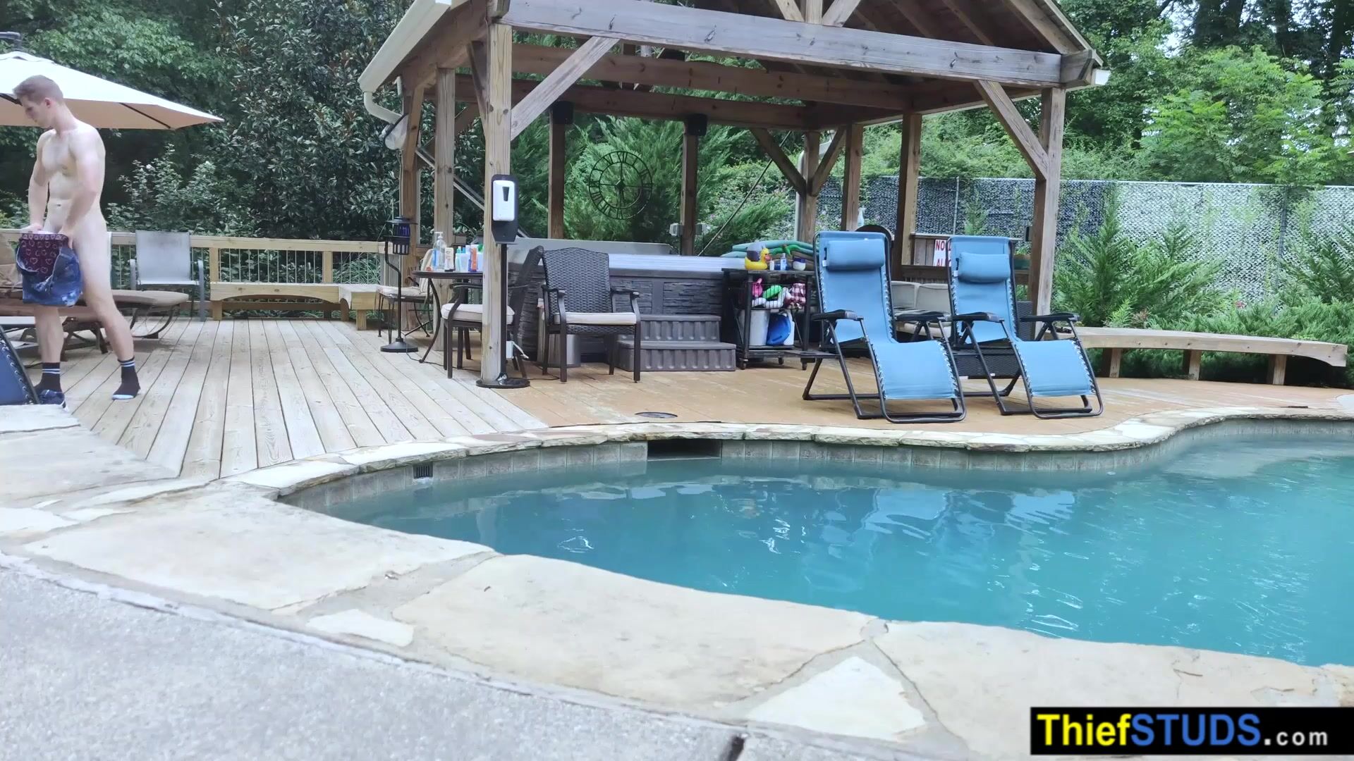 Security guard Jax Thirio spots teen perp Aiden Asher sneaking into the pool and skinny dipping When he confronts him he submits him to a thorough cavity search then ordering him to suck his big cock then fucking the muscle studs bareback outdoor