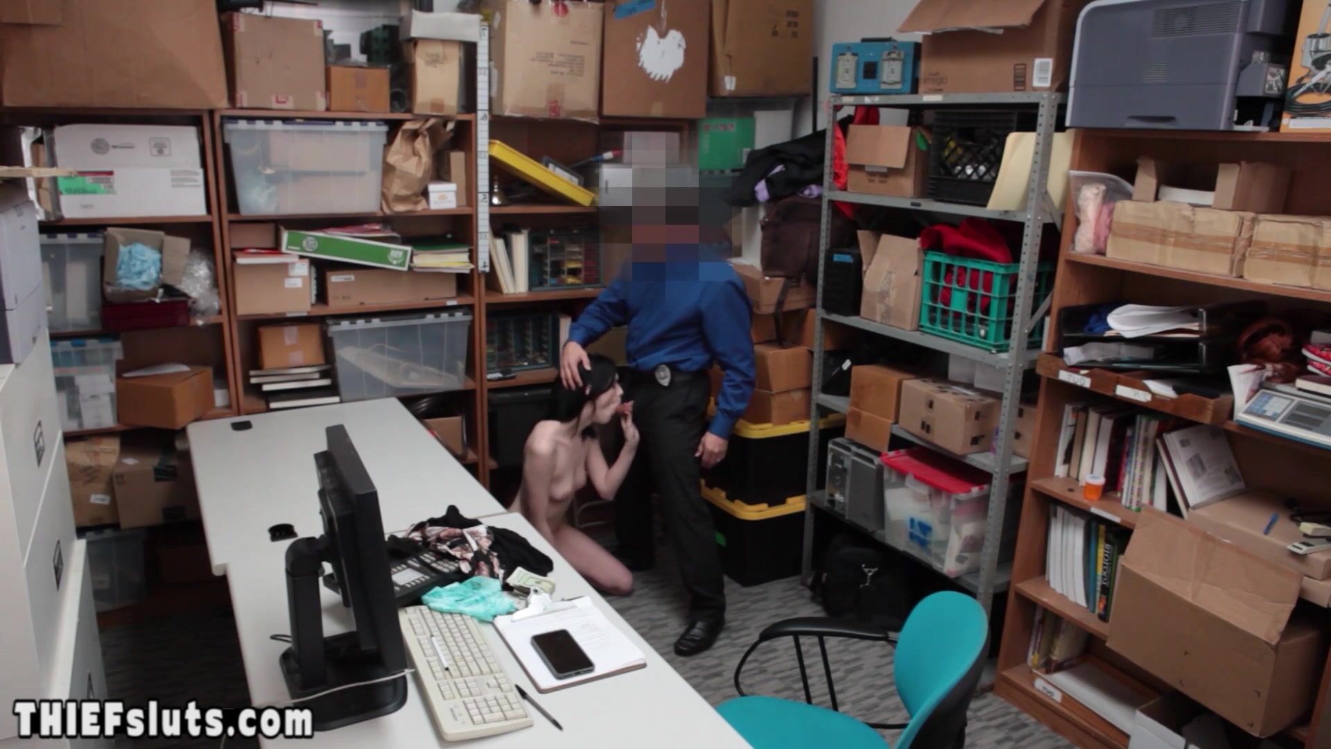 Pale skinned petite teen thief has to fuck a big cock to avoid jail Video
