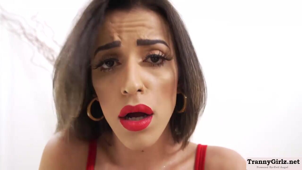 Brunette tranny Pietra Radi stripteases in lingerie and makes her tranny cock hard with a handjob. The busty shemale grabs a big toy and stretches ass for anal fuck. The tbabe masturbates her dick while banging her ass until he reaches for an orgasm.