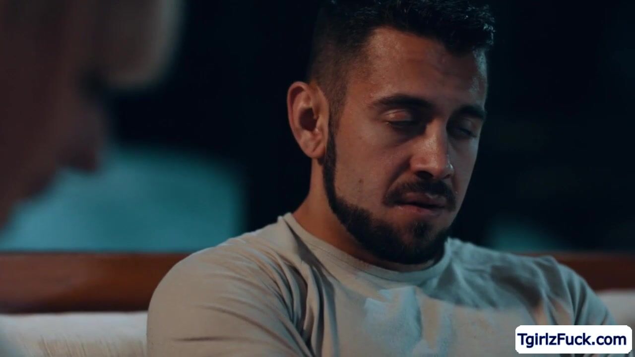 Description: In the living room, busty blonde shemale Jamie French flirts with her stepson and kiss him torridly. The big tits ts stepmom deepthroats his big cock while stroking her tranny dick then stretches her big ass for a hardcore bareback in missionary.
