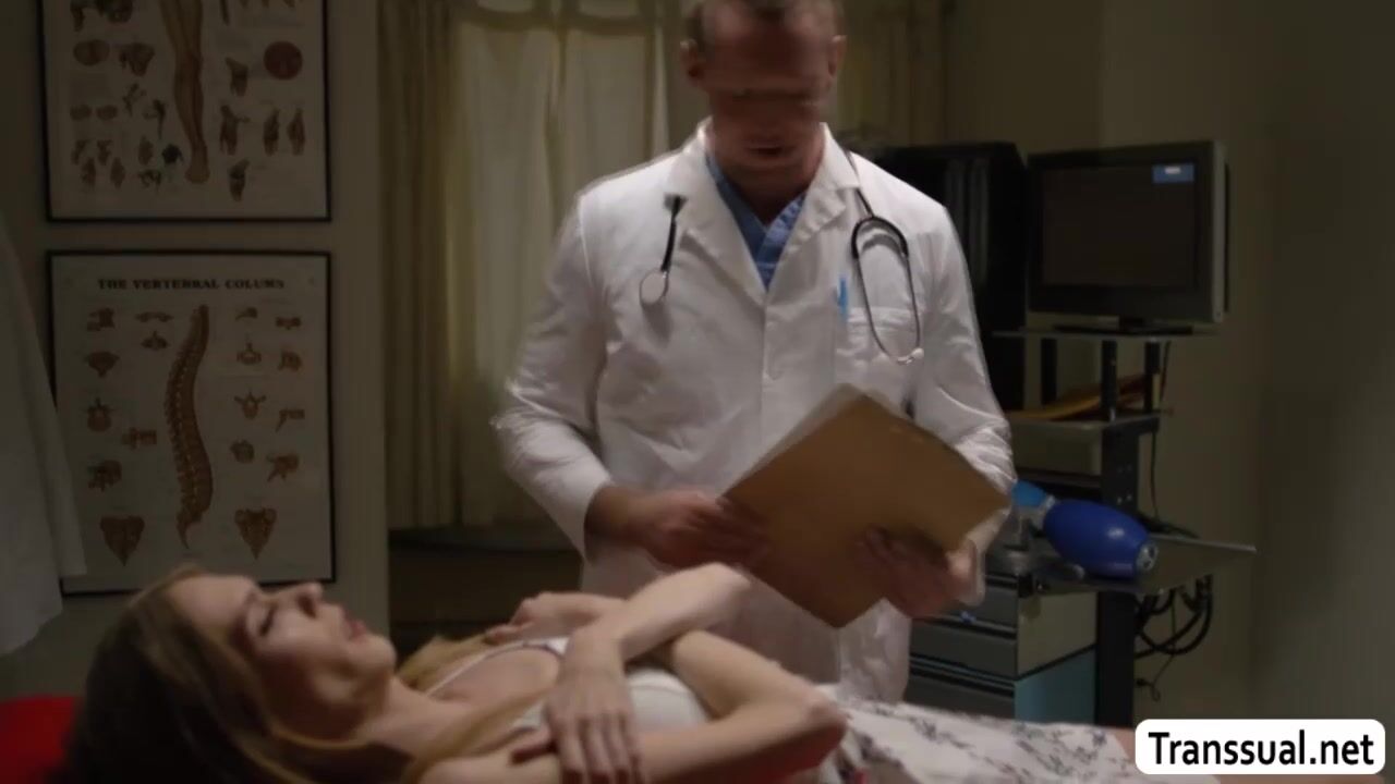Smalltits shemale is in the office of her doctor and checked up by him.After that,the doctor gets horny and they start kissing each other.Next is,smalltits TS sucks doctors big cock passionately and in return,the doctor barebacks her wet ass so hard.
