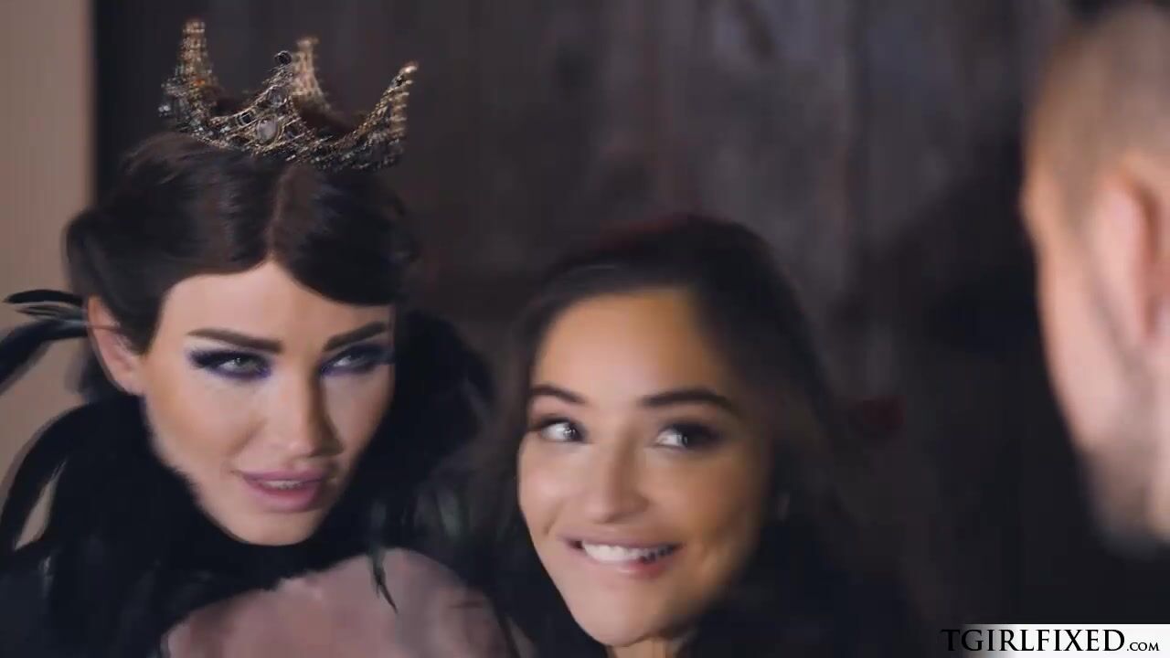 Small tits fairy queen shemale Natalie Mars suddenly appears when the prince is about fuck snow white Emily Willis.She runs towards the tranny and give her a kiss.They trade deepthroat blowjob,pussy licking and rimjob.Stud bangs trans bareback anal.