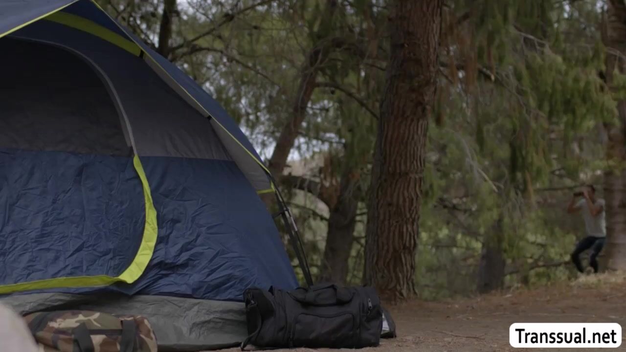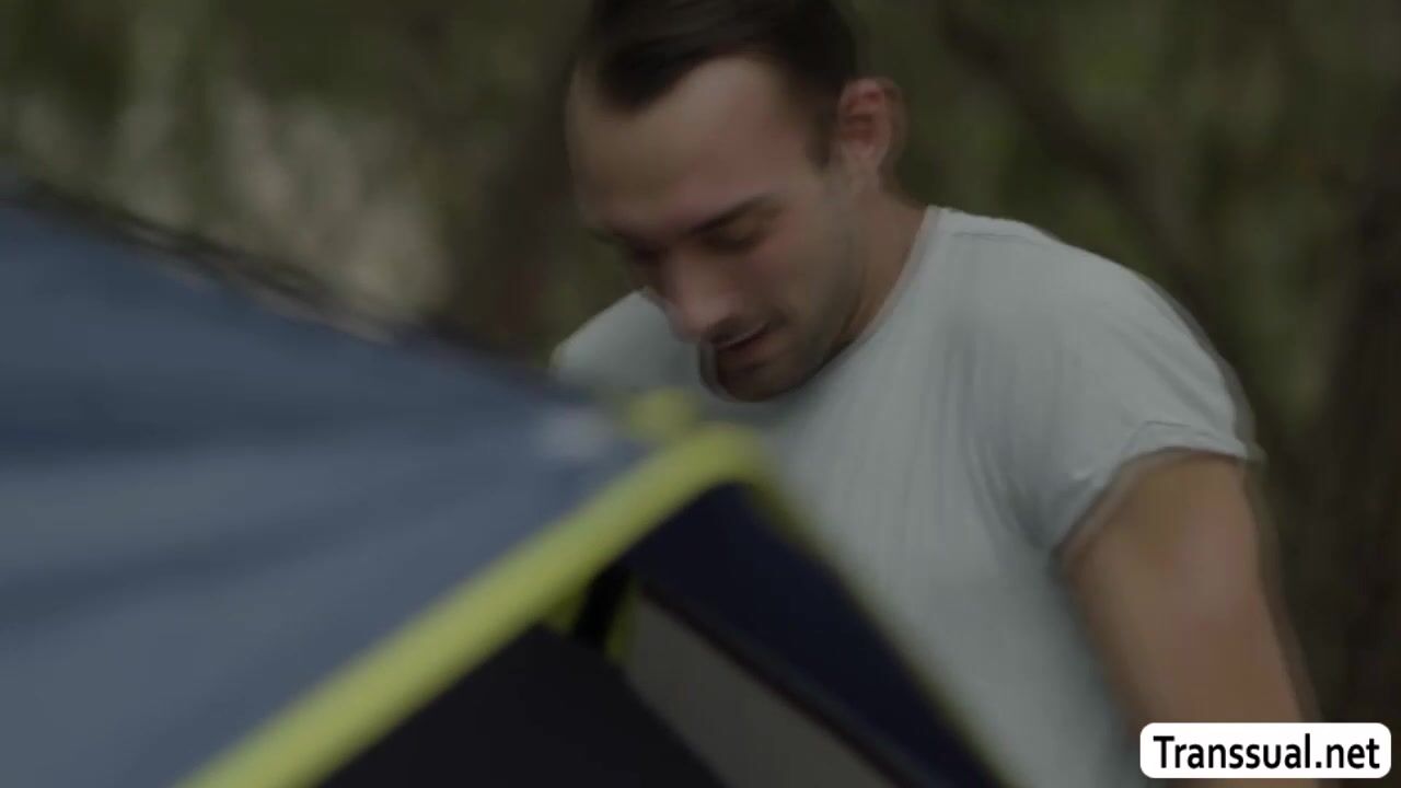 Sexy shemale and her friend are in the woods setting up their tent.After that,her horny friend masturbates her pussy and throats some cock on the hole.Next is,bigtits TS joins them and let them suck her tranny cock and bareback her wet ass.