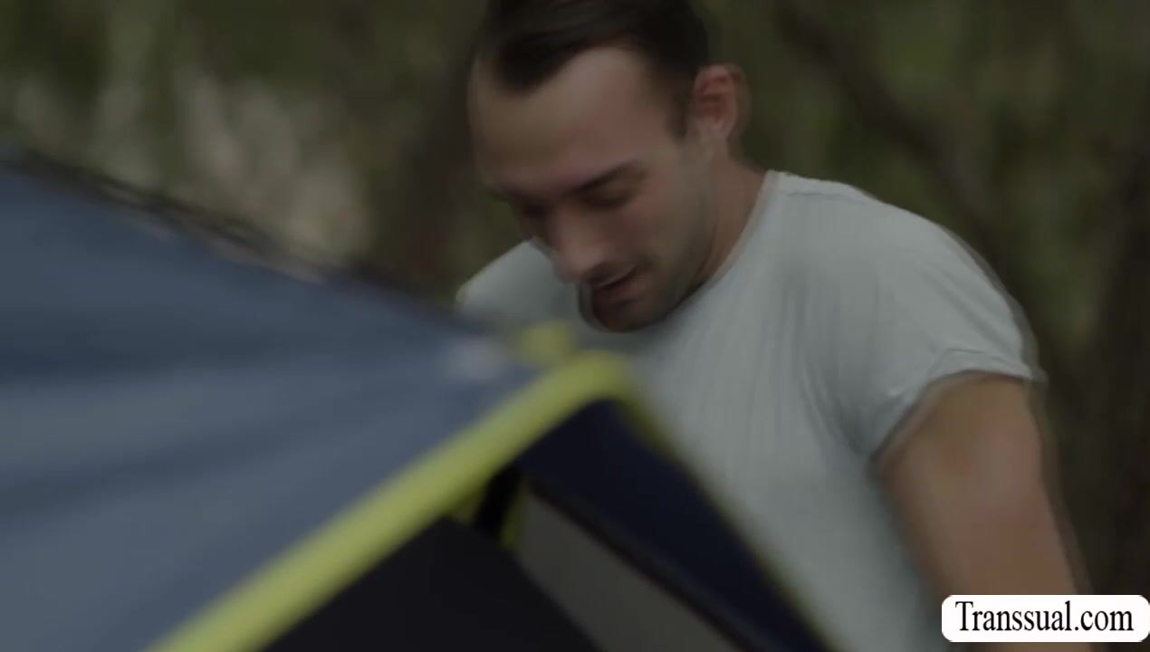 Description: Busty shemale and her friend are in the woods setting up their tent.After that,her horny friend masturbates her pussy and throats some cock on the hole.Next is,bigtits TS joins them and let them suck her tranny cock and bareback her wet ass.