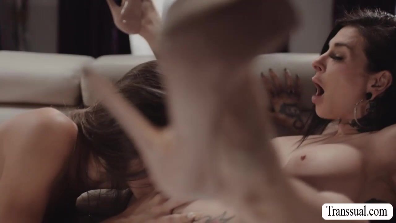 Description: Shemale brunette and her busty tattooed stepmom are on the couch kissing each other passionately.After that,bigtits stepmom throats the tranny cock of her TS stepdaughter.In return,trans stepteen licks and fucks the pussy of her stepmother.