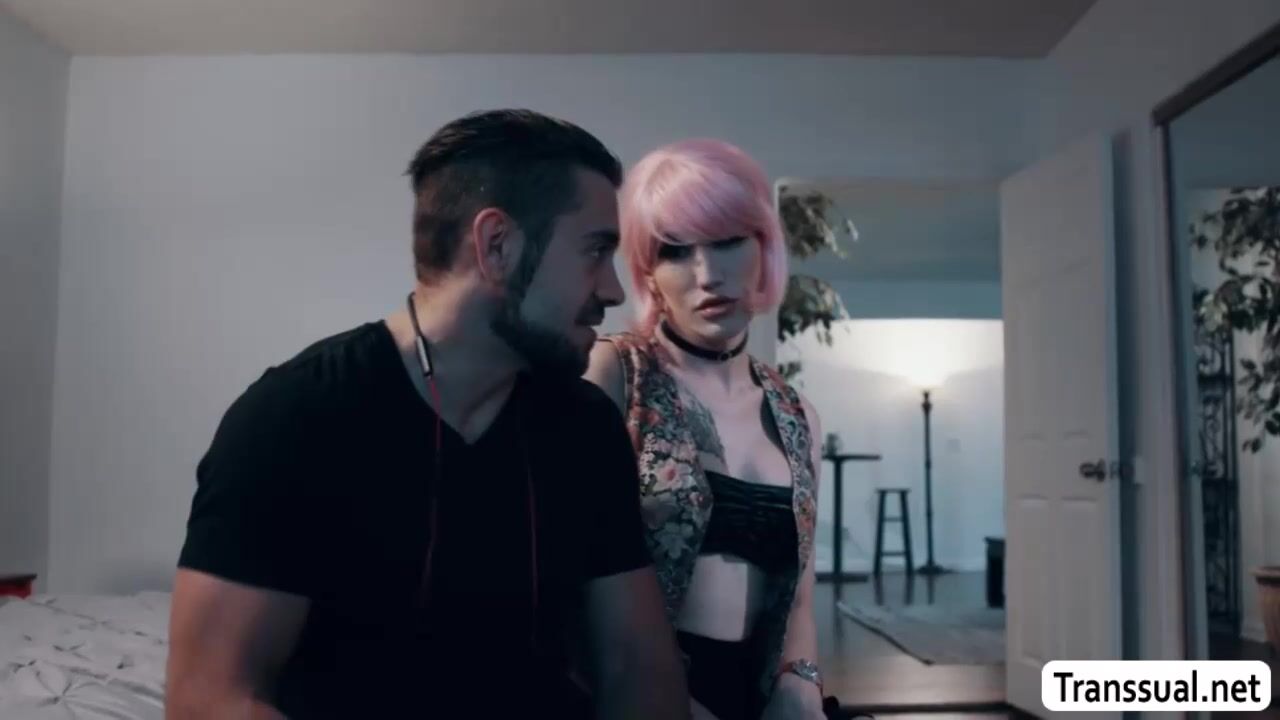 Description: Bigtits pink haired shemale comforts her stepbrother in his room by letting him suck her hard tranny cock passionately.In return,bigtits TS does the same to her handsome stepbro.After that,slut trans lets stepbro bareback her wet ass so hard.