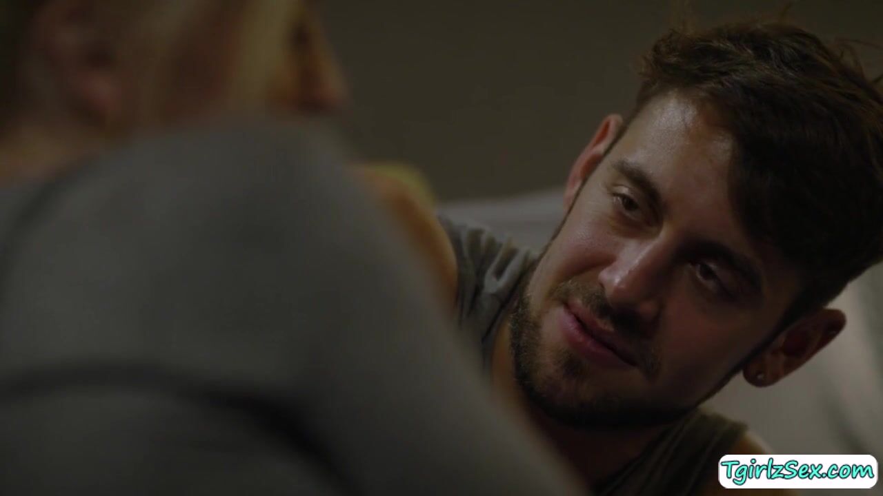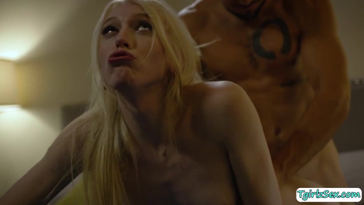 Small tits blonde shemale Izzy Wilde flirts with hunk stud in the couch by stroking his cock while kissing. The skinng tall tgirl trade deeepthroat blowjob with him before he anal barebacks him in missionary while masturbating her huge tranny dick.