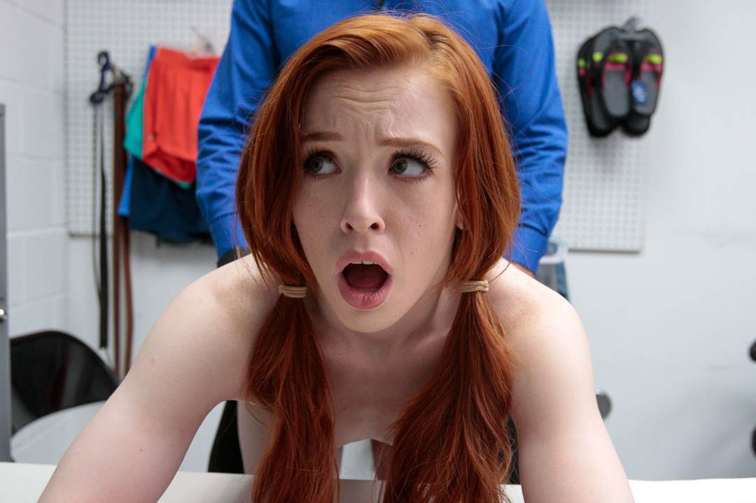 Description: That office desk has seen a lot of pussies but today it is going to hold a pretty redheads firm butt.. so the security guard can fuck her tight pussy!