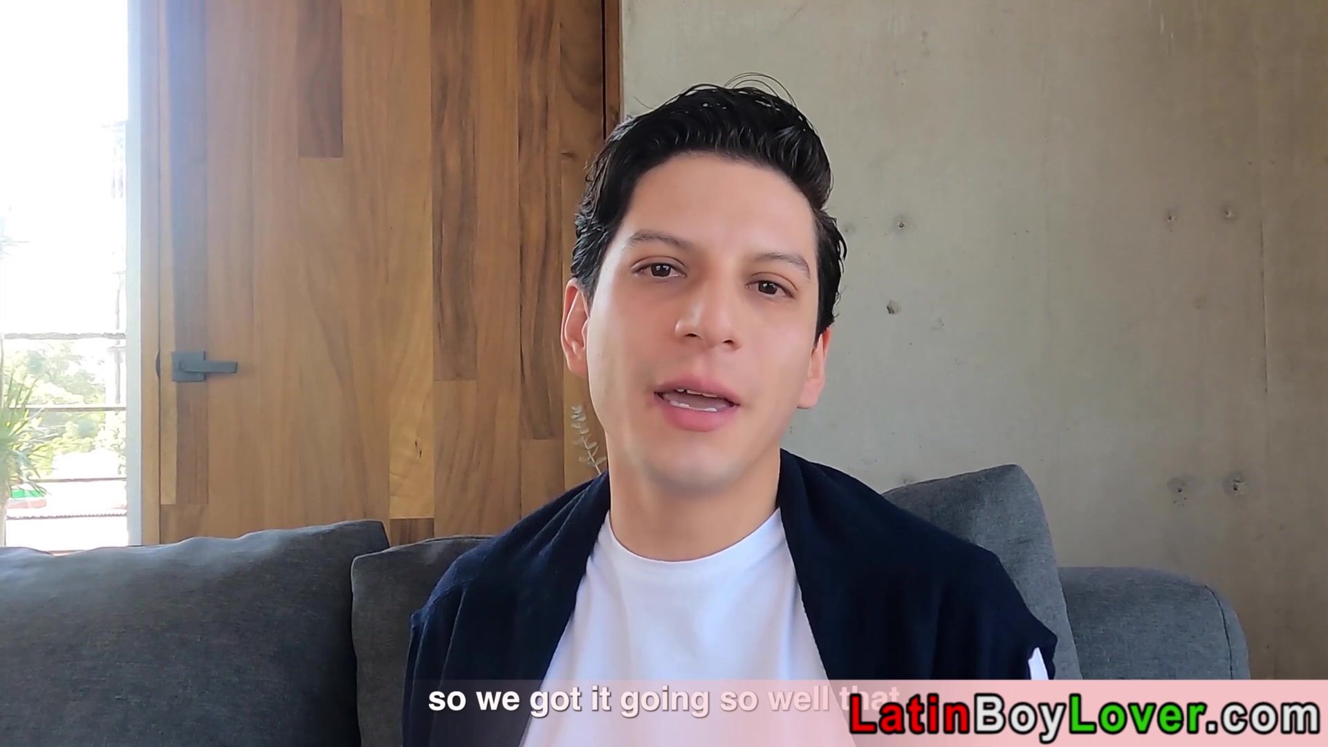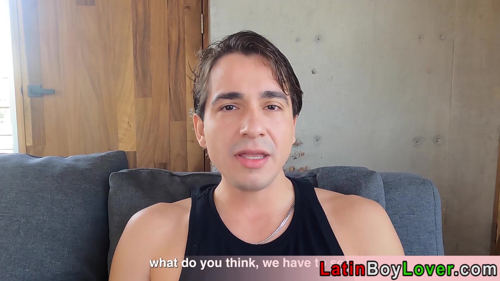 Description: Cute faced amateur latin twink with big cock is sucking a hard dick then he hops onto it for a bareback anal ride during their mate masturbating next to them