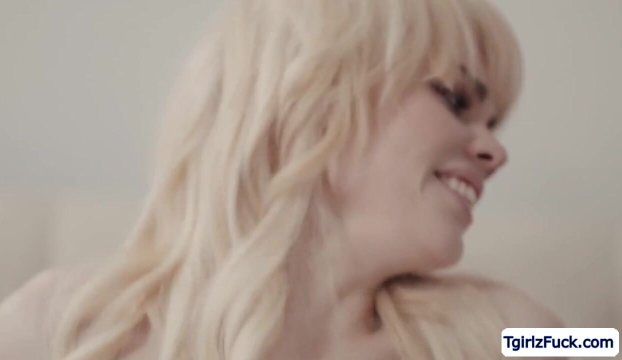 Skinny and small tits shemale strokes her tranny dick while deepthroating his big cock then they enjoy it in 69. The blonde tgirl stretches her ts asshole and rides her stepdads big cock for a hardcore bareback anal penetration doggystyle and missionary.