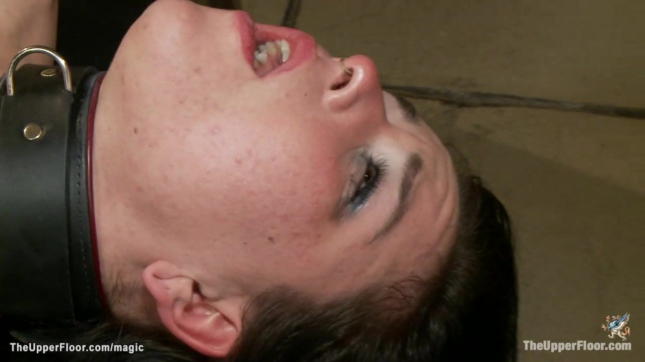 Description: Strapped legs ebony babe Nikki Darling in pile driver position ass fucked with dick on a stick then petite brunette Juliette March rough banged too in the Upper Floor