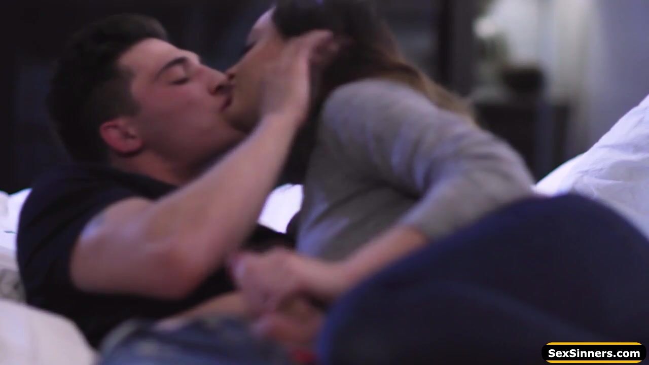 Ebony blindfolds a guy so her petite bff who has a crush on him can suck off his big cock.When he notices it the black babe goes downstairs so they can have sex.The brunette kisses him while giving a handjob and deepthroats.She rides on his big dick