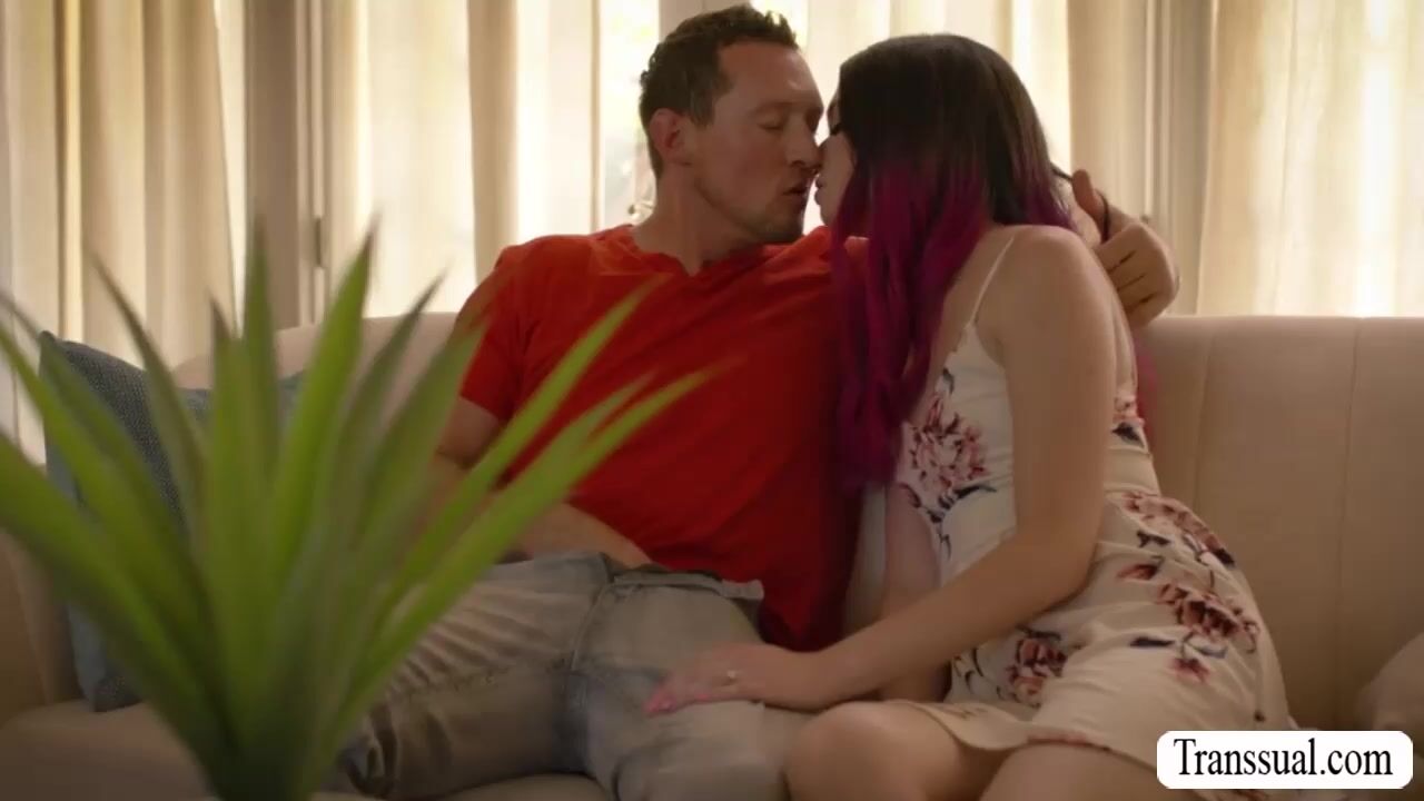 Description: Small tits and pale shemale Natalie Stone is with her horny stepbro.The redhead tranny and the dude exchange kisses.The trans babe deepthroat blowjobs his cock on the couch.The guy bareback anal fucks her tight asshole in several positions.