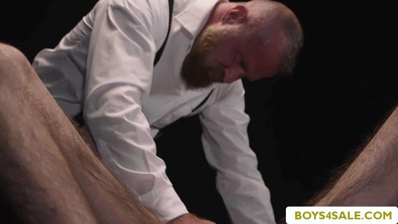 Description: Twink Jaden was a short and pale skinned with dark hair.Lot of client was interested of him.The slave trader was astonished also of what he sees.Then the muscled dude starts to caress his slave so that lot of clients will get his attention then he helps him to masturbate.