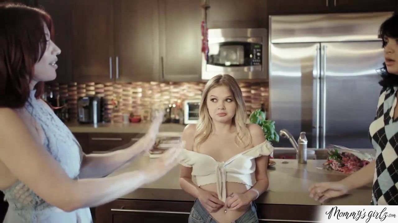 Busty stepmom and her lesbian stepdaughters enjoy threesome Video