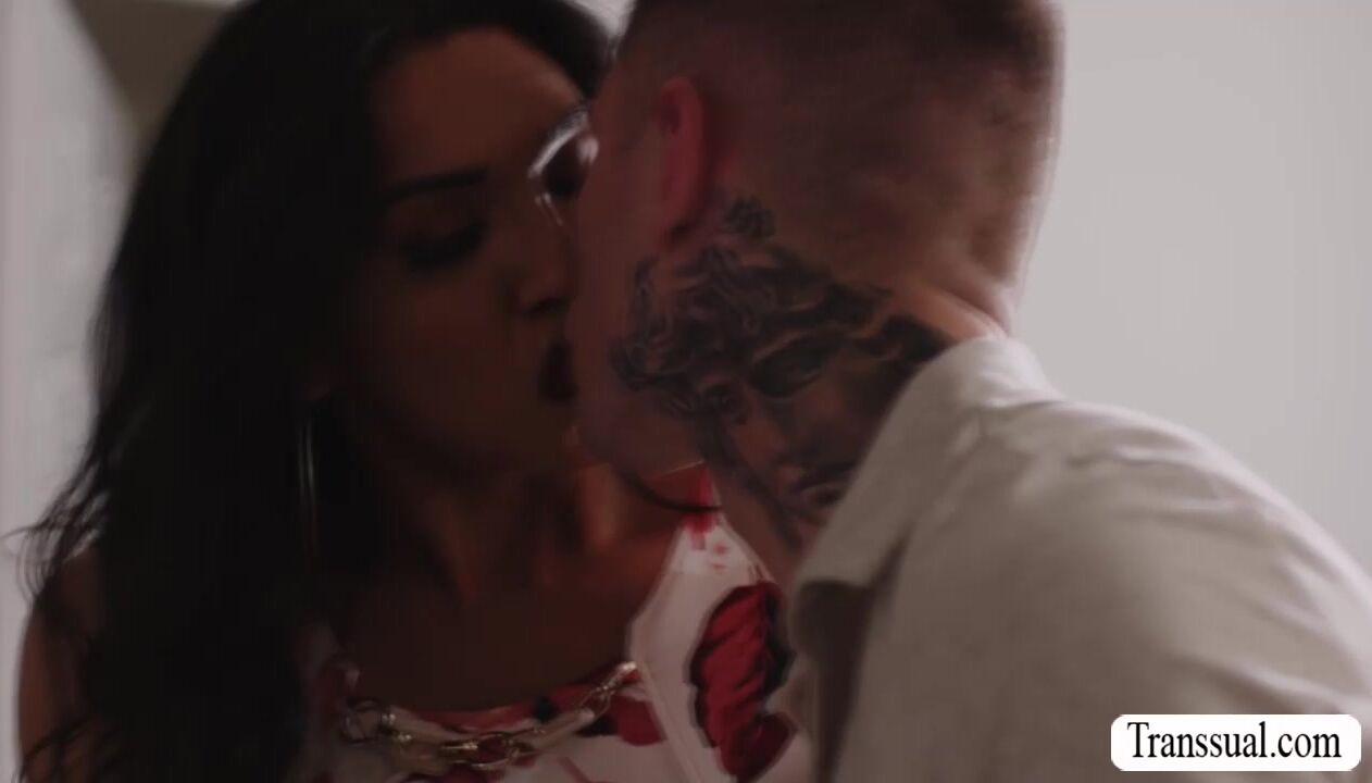 Latina TS stepmom goes to the room of her new stepson and then they start kissing each other.After that,she lets her stepson suck her tranny cock while shes licking his tight ass to makes it wet.Next is,busty Tgirl bareback fucks her stepsons ass.