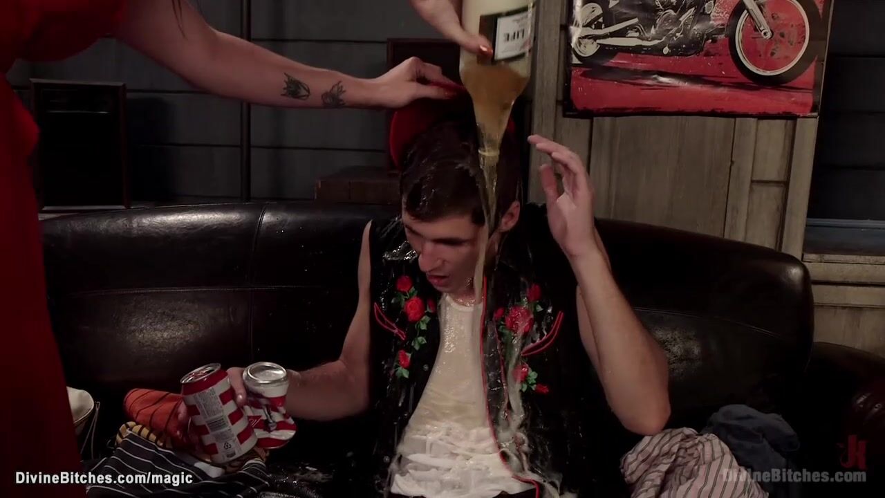 Description: Big tits MILF wife Bella Rossi pours husband Tony Orlando then makes him eat her pussy till dresses up him in maid costume and pegs with strap on cock