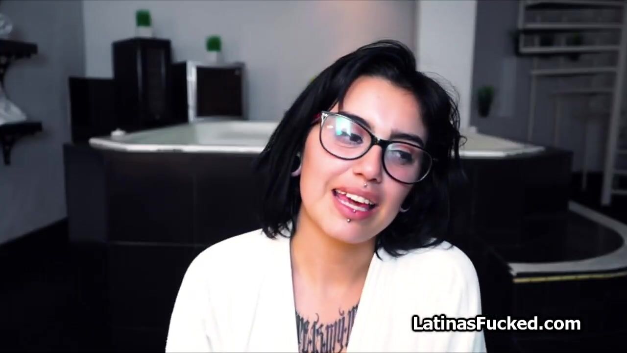 Description: She looks slutty.. really slutty. Black glasses, tattoos, nice tits. And she is ready to ride that cock there. She wants to get fucked hard on camera!