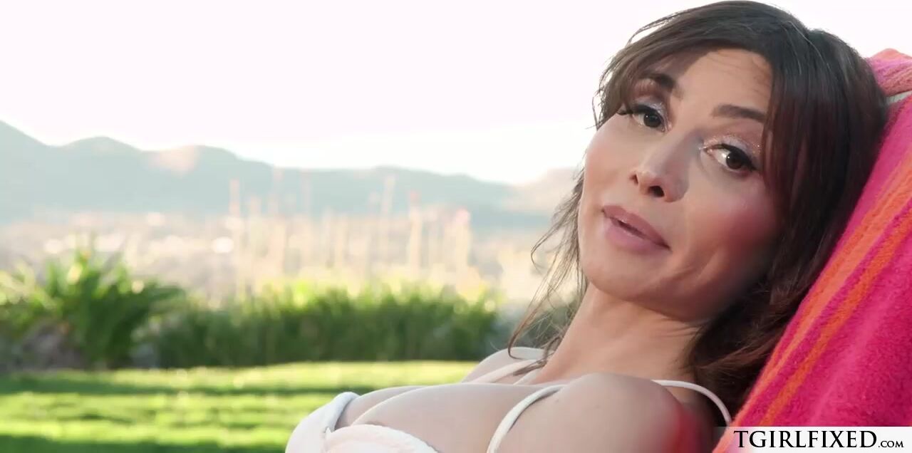 Busty shemale Korra Del Rio and female Spencer Bradley talk outdoor.The horny ladies move indoors where they exchange kisses and titsuck each other.The tranny masturbates and licks her pussy.The babe deepthroat blowjobs her ts cock.The trans fucks her