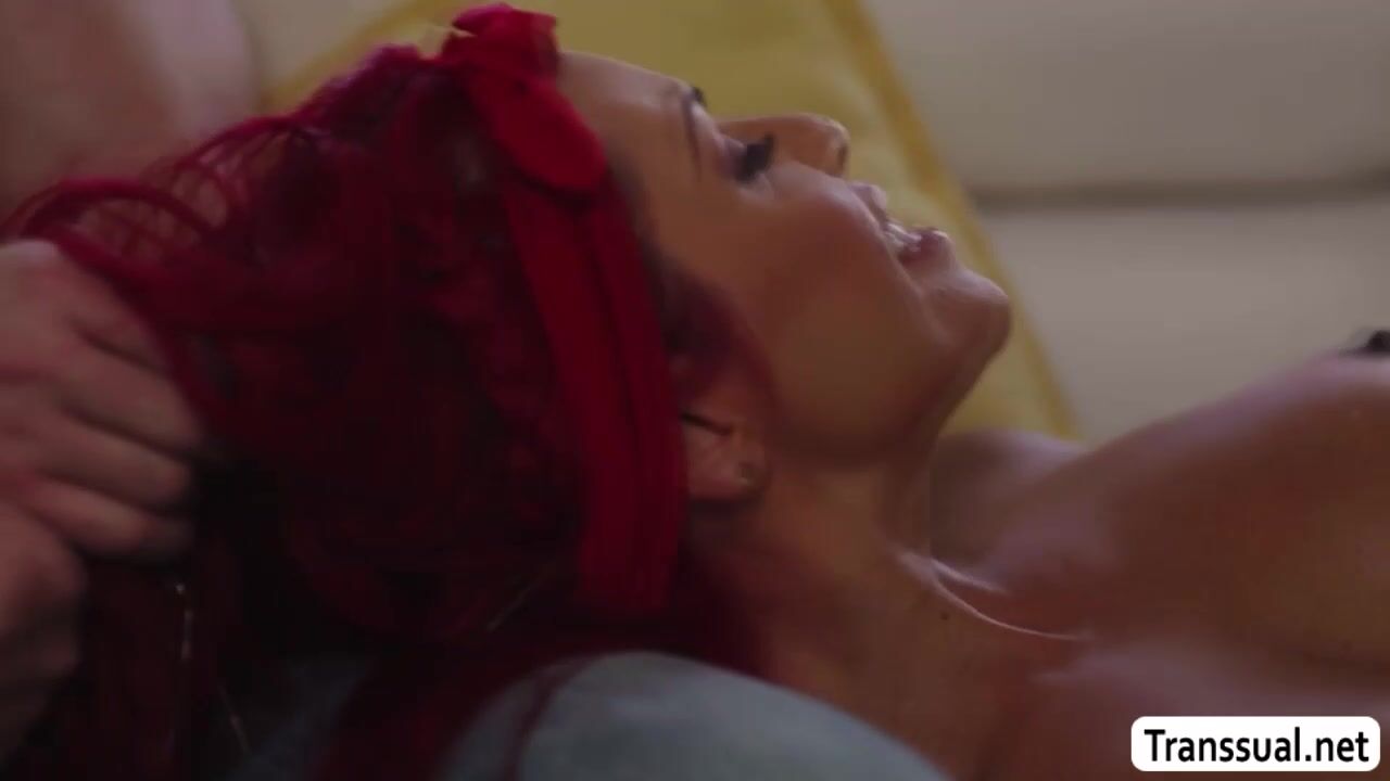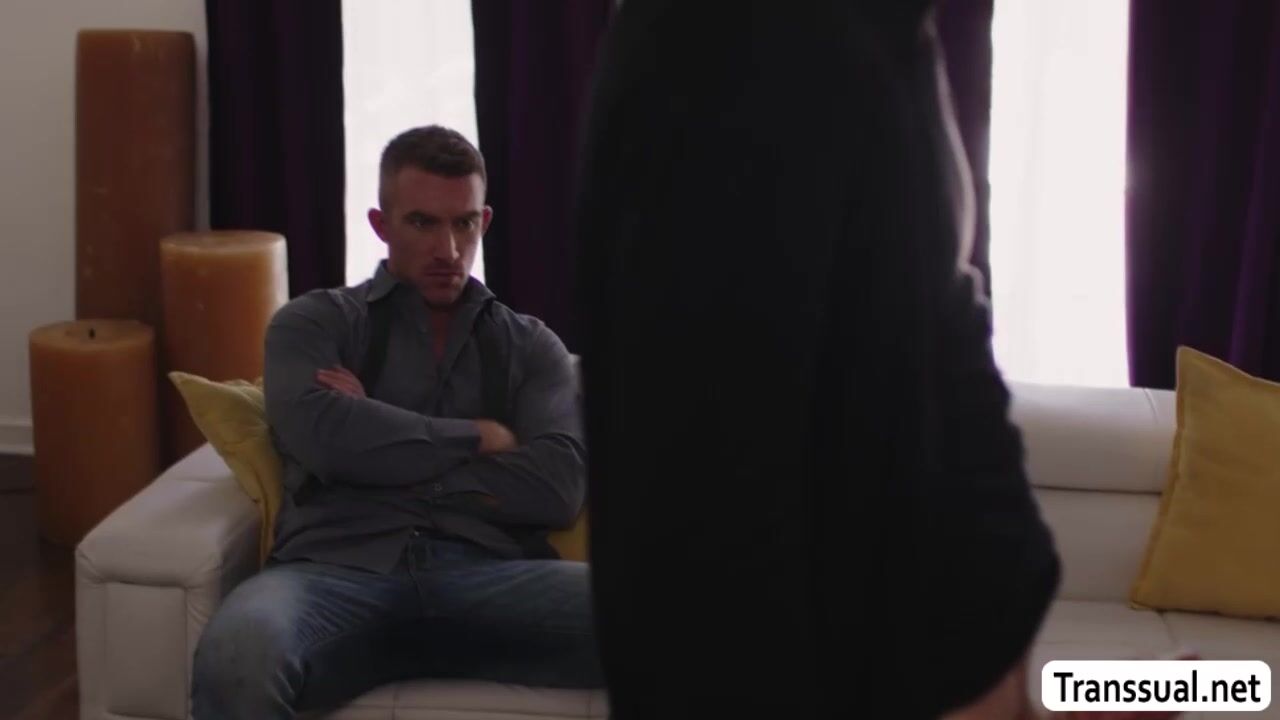Horny dude lets his stepbro watch while he is kissing their shemale stepmom.After that,he lets his TS stepmom throat his hard big cock passionately and in return,he bareback fucks her tight wet ass in front of his stepbrother.