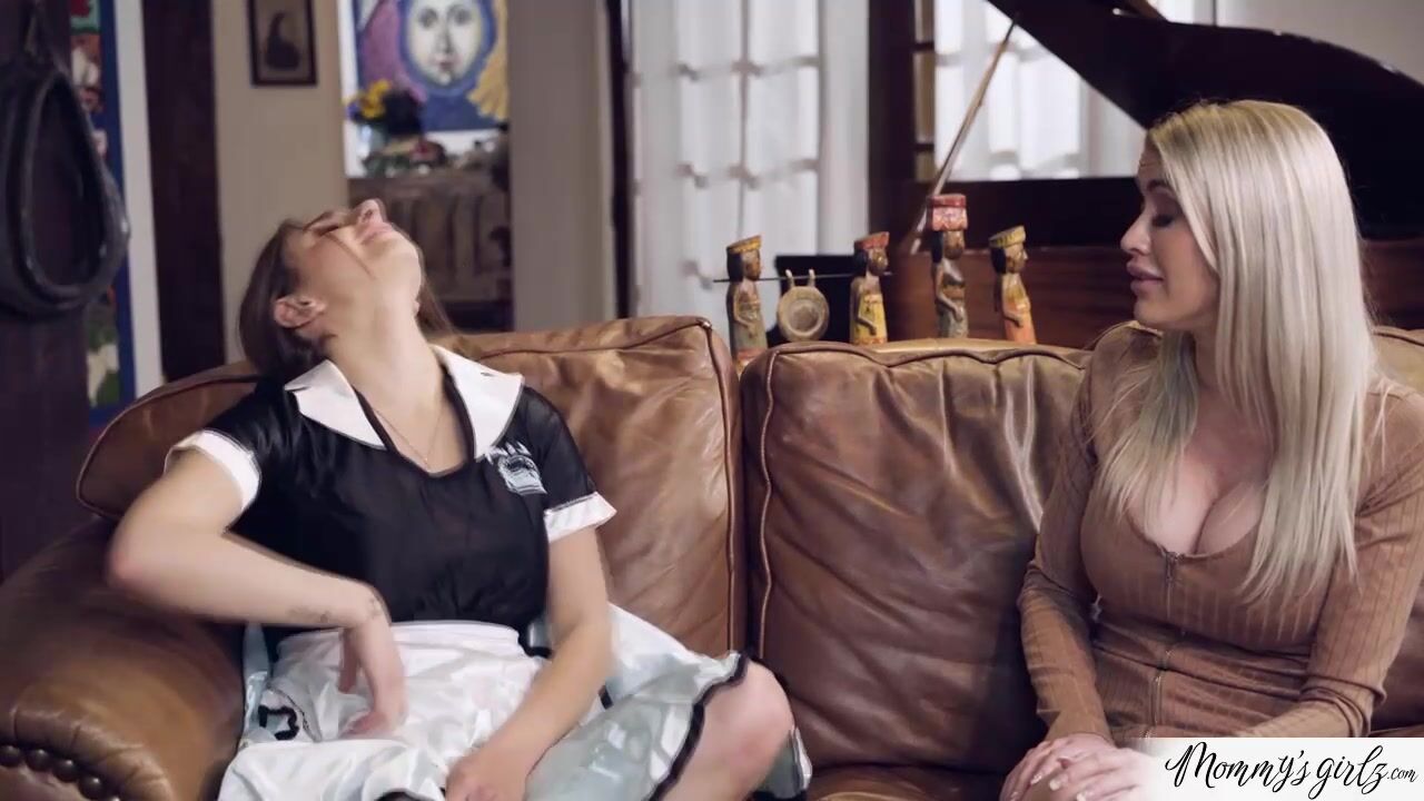 Busty milf stepmom Katie Monroe confronts her lesbian stepdaughter Penelope Kay about staying out late all the time.The big tits cougar helps her undress which turns her on.The ladies exchange kisses and soon they finger and fuck their pussies.