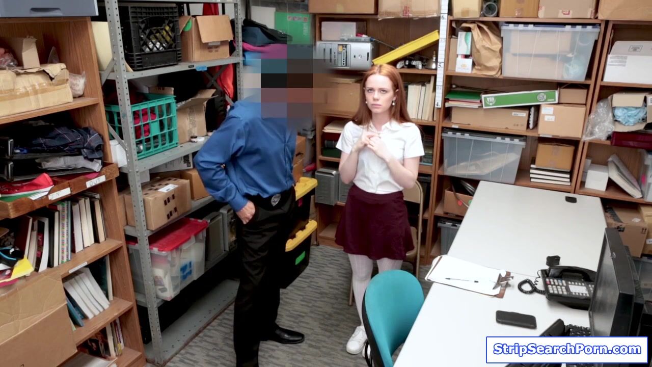Description: A security officer recovers several stolen jewelries after conducting strip search on a redhead teen.The small tits shoplifter cooperates in order to avoid jail.She goes down and blowjobs his big cock.Afterwards the officer fucks her hairy pussy.