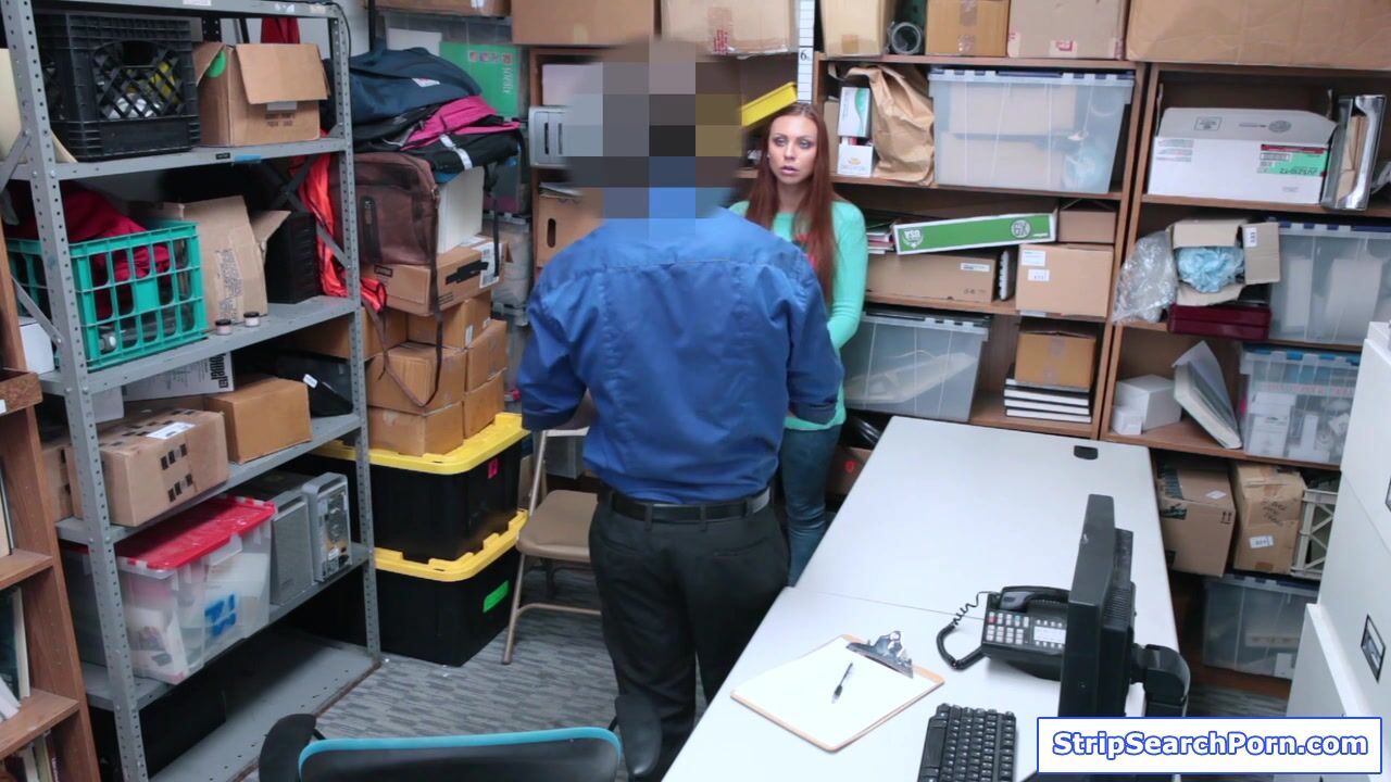A redhead czech babe gets caught stealing but denies the charges.The security officer conducts strip search and recovers the stolen item.The teen cooperates to avoid jail.She blowjobs his big cock then rides on it getting her shaved pussy fucked.