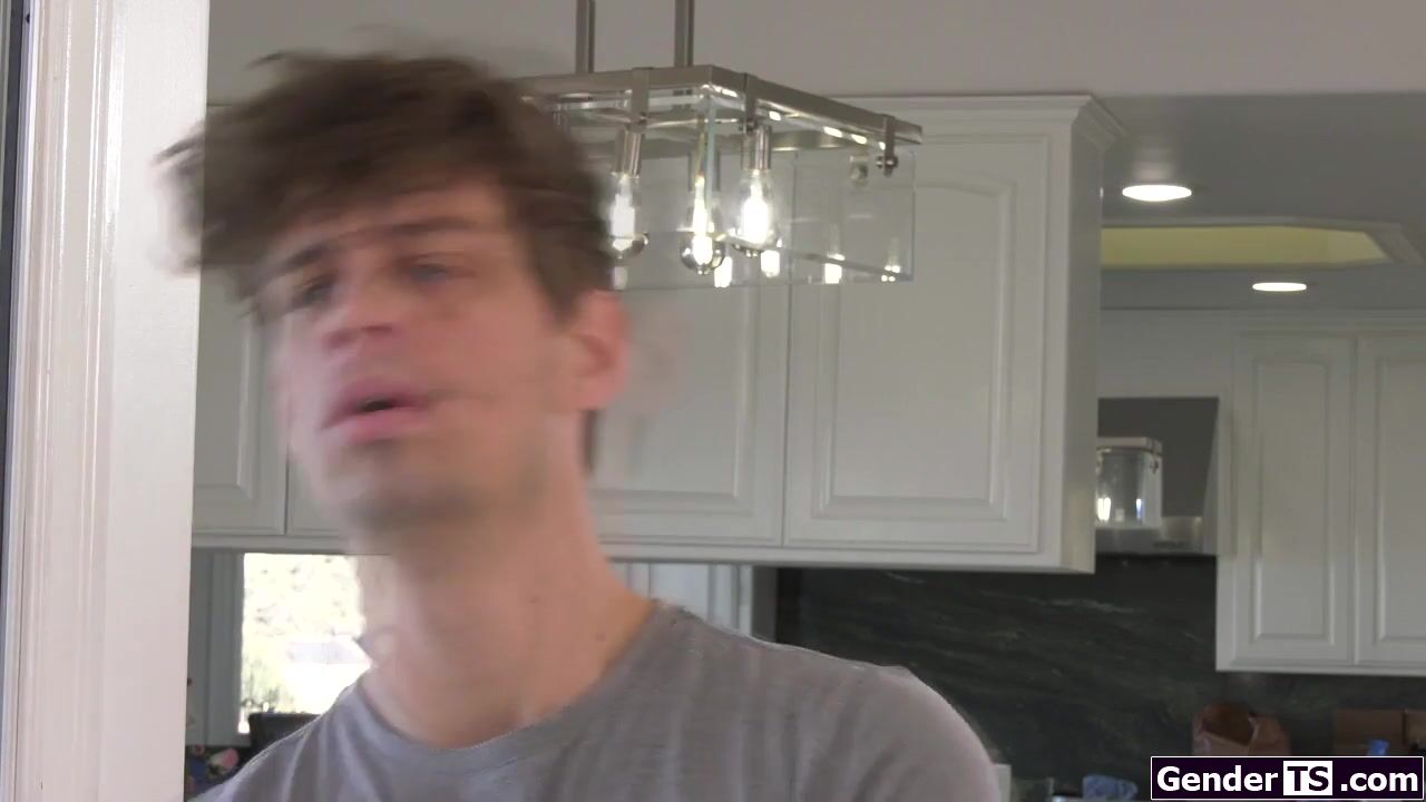 Busty shemale stepmom Ariel Demure has another toyboy now.Her stepson challenges him to fuck the tgirl to prove whos best.The big tits trans sucks their big cocks and gives a threesome handjob.Both guys then bareback anal fuck the brunette ts babe