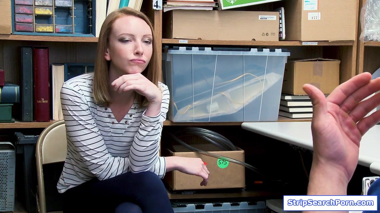 The store owners teen stepdaughter gets caught in a shoplifting activity.The officer conducts strip search getting her fully naked.She cooperates to avoid trouble then blowjobs his big cock.The guy fucks her hairy pussy while grabbing her small tits