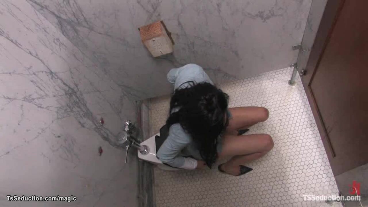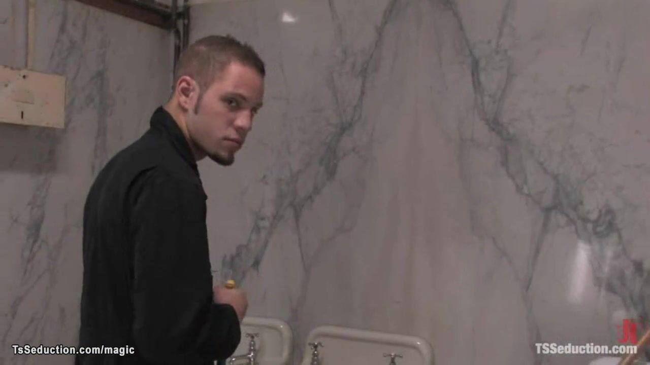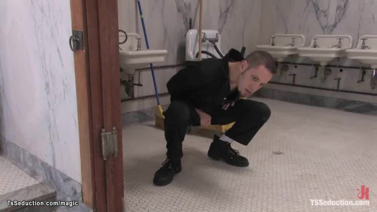 Shemale fuck cleaning man in toilet Video