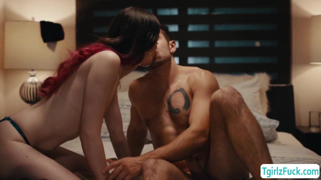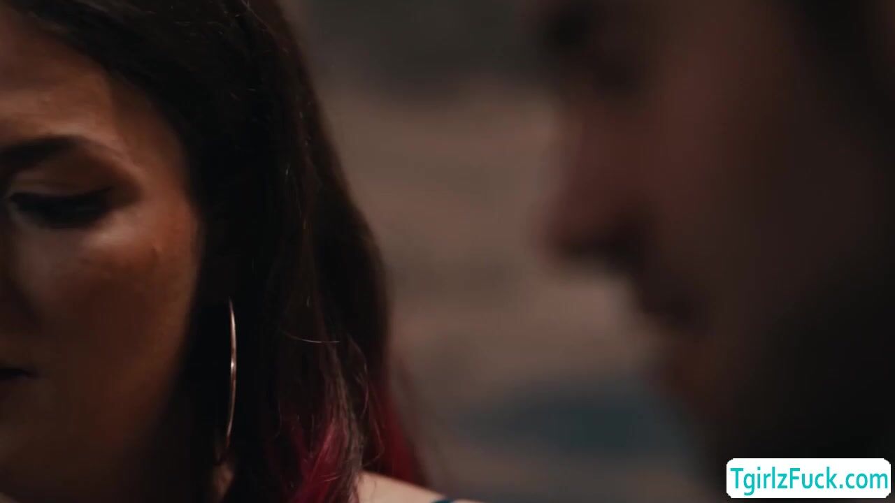 Description: Small tits and skinny shemale Natalie Stone talks to her stepbro Dante Colle in the room.The pale tranny shows interest to fuck him.The horny dude kiss and titsucks her.The brunette trans and the stud trades deepthroat blowjobs.He bareback anal fucks her big ass.
