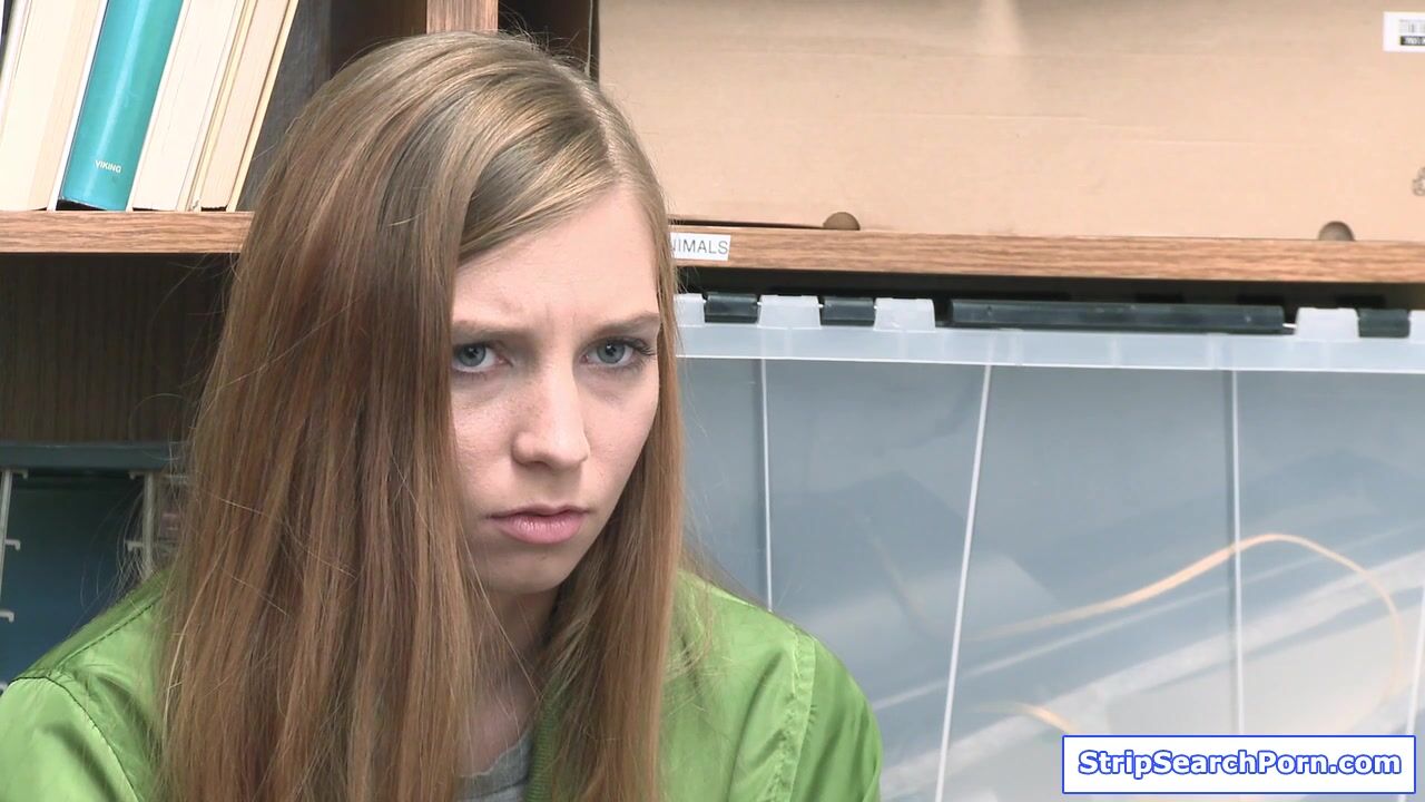 A teen shoplifter pleads the officer to let her go after undergoing stripsearch.The officer offers a trade,him letting her go in exchange for having sex.The skinny redhead babe agrees and blowjobs his big cock.Then the guy fucks her hairy pussy.