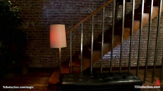 Blond shemale fucks handcuffed courier Video