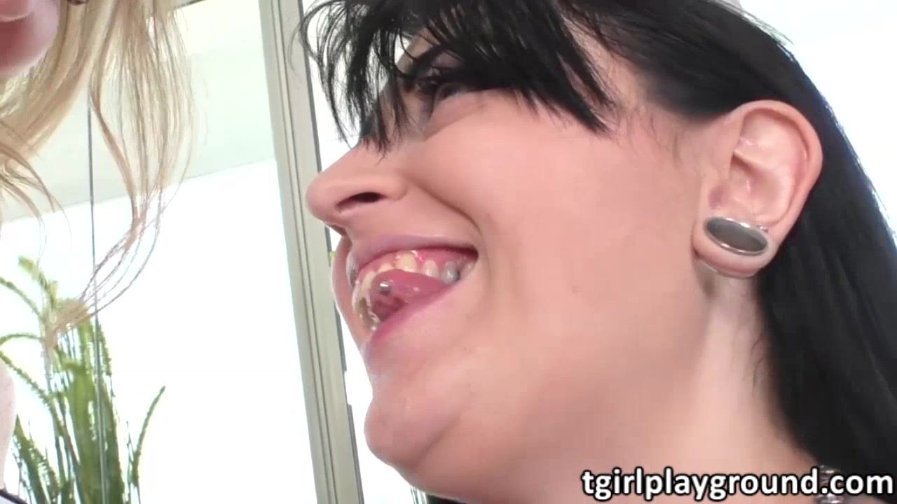 Description: Busty ts Kayleigh Coxx wear revealing lingerie to start.The female Draven Star strokes trannys cock as they make out.The teen drops to her knees to give a slobbering blowjob.The blonde trans returns the oral favor.The tgirl fucks her pussy on the bed