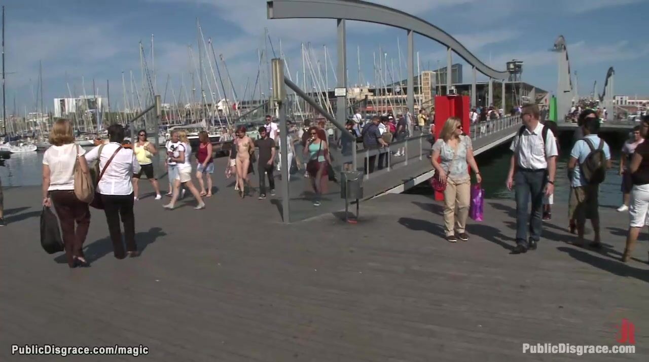Master James Deen with big cock fucks in mouth Spanish ginger babe Yakima Squaw then binds her to rail and fucks in the ass while she is blindfolded then walks her naked down the crowded dock